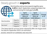 - वाणिज्य एवं उद्योग मंत्रालय द्वारा जारी आंकड़ों के अनुसार, सितंबर माह में आयात के निर्यात से अधिक रहने के कारण भारत का व्यापार घाटा 93% बढ़ गया।
