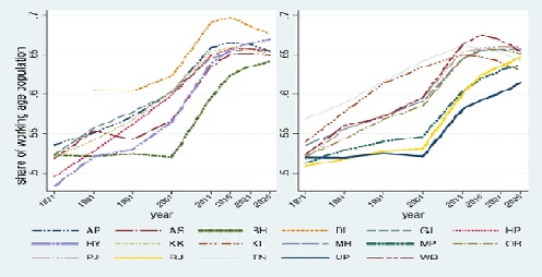 - Youthful States such as Bihar and Uttar Pradesh still have a rising share of working-age population. These states enjoy a longer demographic window, offering opportunities for sustained growth if adequate investments in education, health, and skills are made.