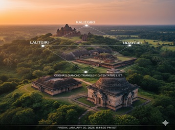 - UNESCO has included the ‘Diamond Triangle’, consisting of the Buddhist sites of Ratnagiri, Udayagiri, and Lalitgiri in Odisha, in India’s Tentative List of World Heritage Sites.