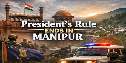 - राष्ट्रपति द्रौपदी मुर्मु ने मणिपुर में राष्ट्रपति शासन समाप्त करने की आधिकारिक घोषणा की।