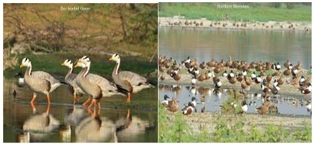 - जैव विविधता: यहाँ लगभग 249 पक्षी प्रजातियों की उपस्थिति दर्ज की गई है, जिनमें से 62 प्रजातियाँ विशेष रूप से आर्द्रभूमि (wetland) पर निर्भर हैं। मुख्य प्रजातियों में बार-हेडेड गूज (Bar-headed Goose), पेंटेड स्टॉर्क और विभिन्न प्रकार की बत्तखें शामिल हैं।