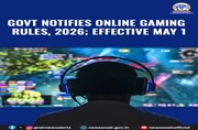 - इलेक्ट्रॉनिकी और सूचना प्रौद्योगिकी मंत्रालय (MeitY) ने 'ऑनलाइन गेमिंग के प्रचार और विनियमन संबंधी नियम, 2026' अधिसूचित किया।