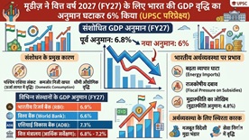 - मूडीज रेटिंग्स ने FY27 के लिए भारत की GDP वृद्धि के अनुमान को 6.8% से घटाकर 6% किया।