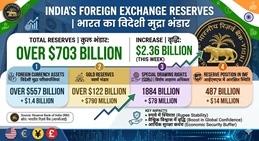 - India's foreign exchange reserves rose by $2.36 billion to reach $703.31 billion in the week ended April 17, 2026.