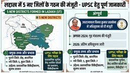 - लद्दाख के उपराज्यपाल (LG) विनय कुमार सक्सेना ने केंद्र शासित प्रदेश लद्दाख में पांच नए जिलों के गठन को औपचारिक मंजूरी दी, जिससे अब लद्दाख में कुल जिलों की संख्या 2 (लेह और कारगिल) से बढ़कर 7 हो गई है।