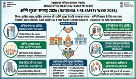 - स्वास्थ्य एवं परिवार कल्याण मंत्रालय ने 4 से 10 मई 2026 तक 'अग्नि सुरक्षा सप्ताह 2026' (Fire Safety Week 2026) आयोजित करने की घोषणा की है।