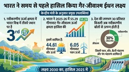 - केंद्रीय नवीन और नवीकरणीय ऊर्जा मंत्री प्रहलाद जोशी ने नई दिल्ली में आयोजित ‘रेजिलिएंट फ्यूचर्स समिट 2026’ को संबोधित करते हुए बताया कि, भारत ने पांच वर्ष पहले ही गैर-जीवाश्म ईंधन स्रोतों से 50% बिजली प्राप्त करने का लक्ष्य हासिल किया।